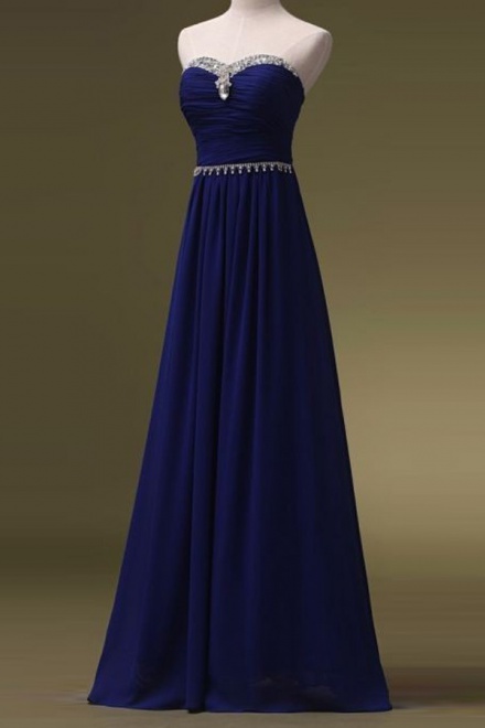 A-Line Sweetheart Floor-Length Royal Blue Chiffon Prom Dress with Beading