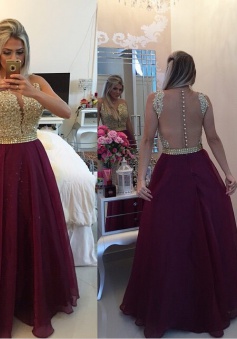 Elegant A-line Floor-length Chiffon Beading Prom / Evening Dress