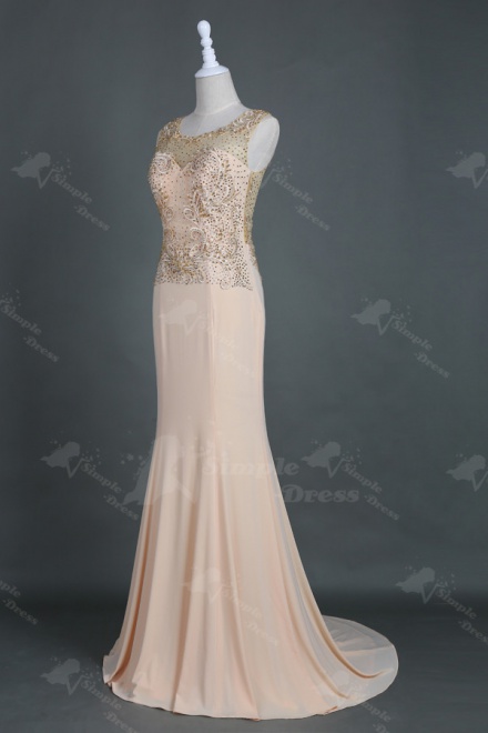 Elegant Sweep Train Pink Sheath Homecoming Prom Dress with Appliques Beading