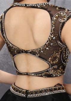 Two Piece Open Back Short Black Homecoming Dress with Gold Sequins