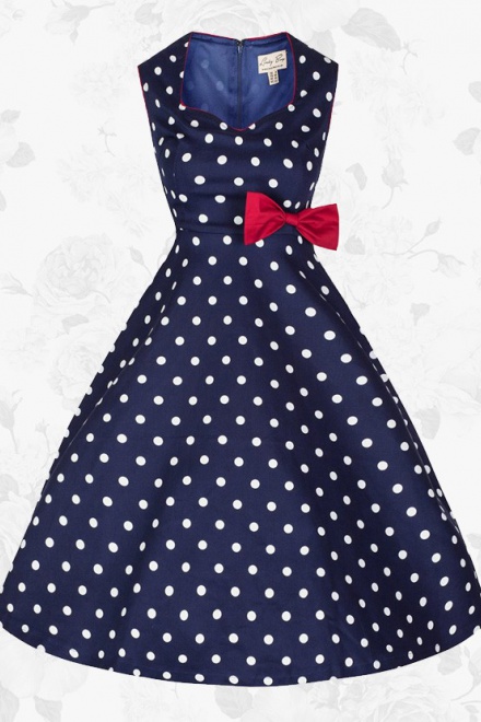 Blue Retro 50s 60s Style Polka Dot Rockabilly Swing Pinup Party Dress With Bowknot