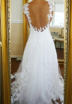 Appliques Cap Sleeves Square Court Train White Tulle Wedding Dress With Lace