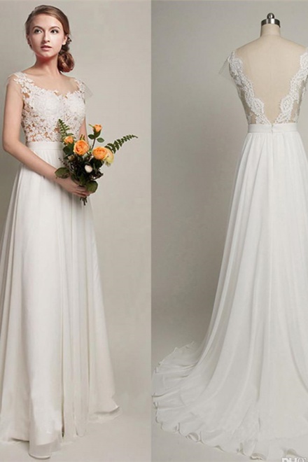 Pure White Cheap Wedding Dress 2018 Lace Chiffon Open Back Bridal Shower Dress BA4218