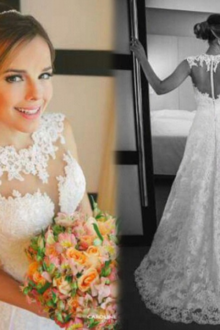 Beautiful A-Line White Lace Bridal Gown 2018 Sweep Train Plus Size Formal Wedding Dress