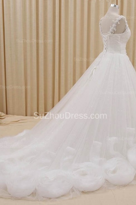 V-Neck Ruffle Tiered Crystal Formal Bridal Gowns White Court Train Designer Plus Size Wedding Dresses