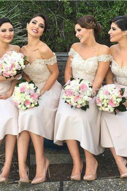 A-Line Off-the-Shoulder Light Pink Bridesmaid Dress with Appliques
