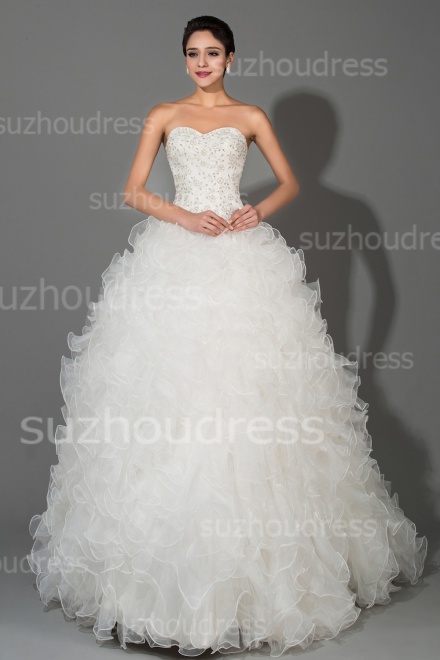 Elegant Sweetheart Tiered Organza Long Wedding Dresses with Beadings Court Train Designer Lace-up Formal Bridal Gowns