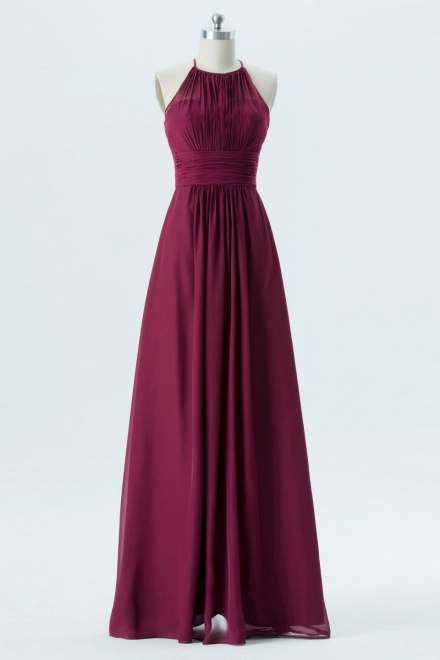 Illusion Halter Long Straps Back Chiffon Bridesmaid Dress
