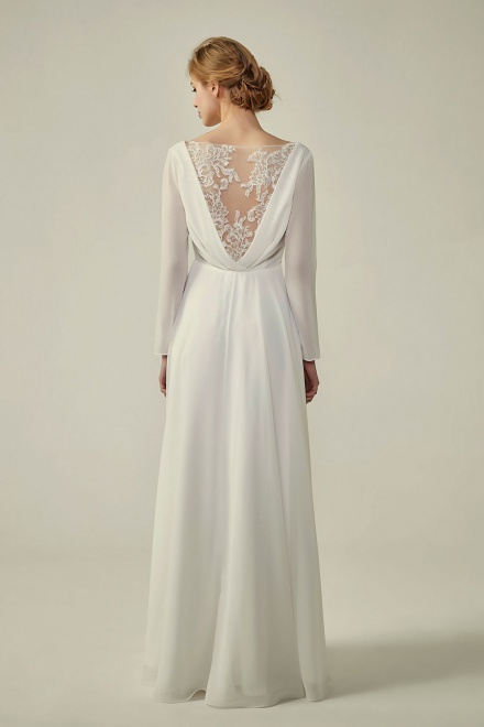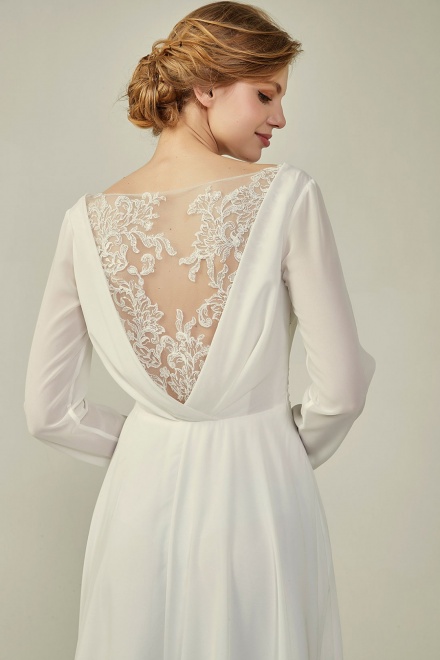 Long Sleeve Illusion Lace Back Closure V-Neck Elegant Bridesmaid Dress