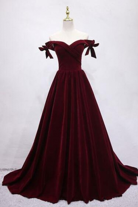 Elegant Mermaid Burgundy Velvet Long Evening Dress