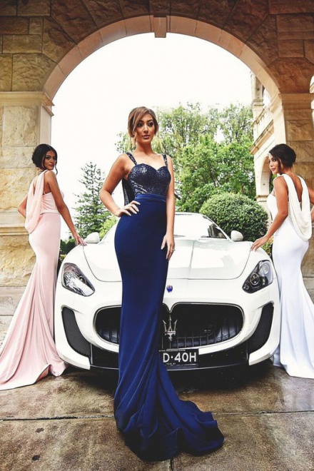 Long Spaghetti Stunning Prom/ Bridesmaid Dresses With Shawl