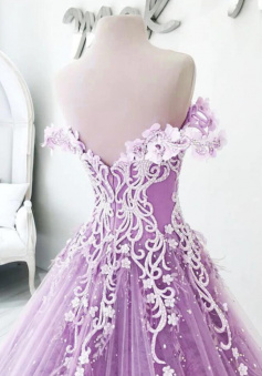 Gorgeous Off the Shoulder Long Lilac Prom Dress with Flowers