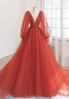 Ball Gown V Neck Sleeveless Floor-Length Tulle Prom DressesWith Beading