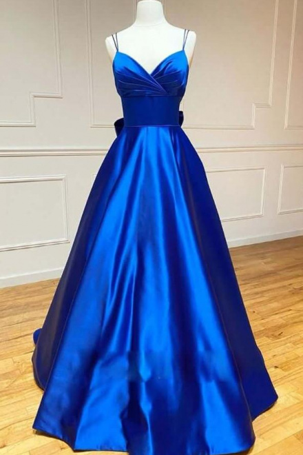 A Line Spaghetti Straps Royal Blue Prom Dress With Bowknot