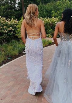 Mermaid Glittering Spaghetti Straps Sequins Prom Dress