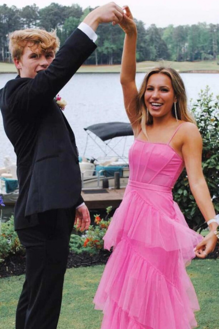 Simple A Line Pink Prom Evening Gowns