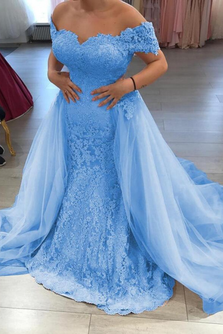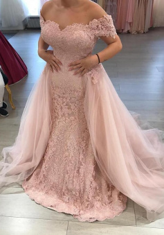 Sheath Off Shoulder Sweetheart Lace With Tulle Shawl Sweetheart Long Prom Dresses