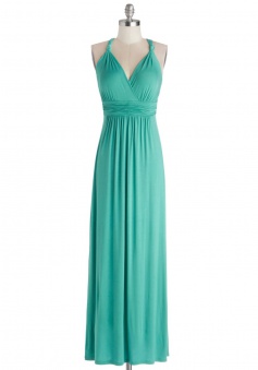 Blue V Neck Open Back Criss Cross A Line Long Bridesmaid Dress CHDB-80066