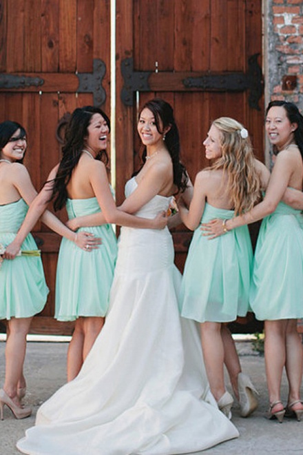 Hot Selling Short Sweetheart Chiffon Ruched Mint Bridesmaid Dress