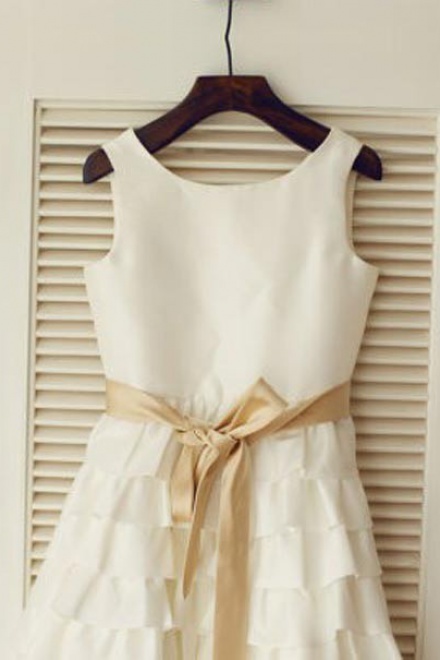 Simple A-line Scoop Sleeveless Sash Ruffles Flower Girl Dress