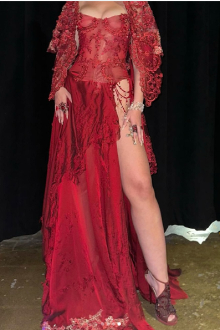 Burgudny Off Shoulder Long Dress Evening Party Dress