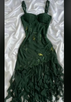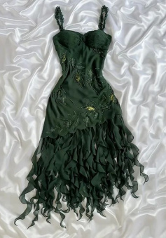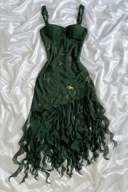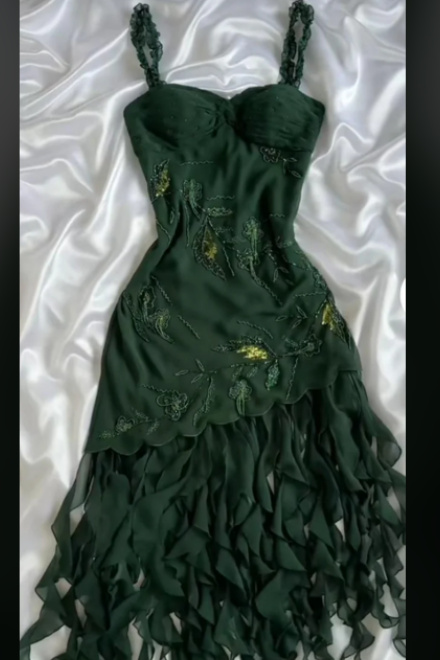 Dark Green Chiffon Ruffle Prom Dress Formal Dress Evening Party Dresses