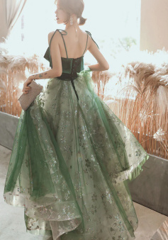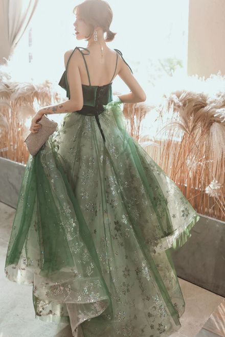Beautiful Dark Green Straps Tulle with Velvet Party Dress, Green Evening Gown Prom Dress