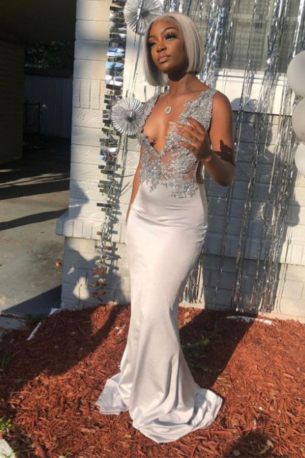 Gray Mermaid Prom Dresses Long Evening Dresses