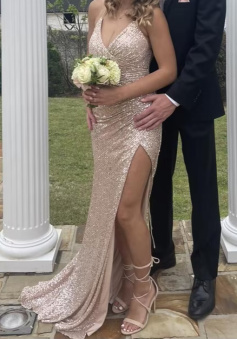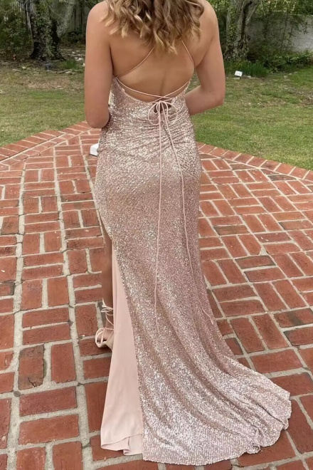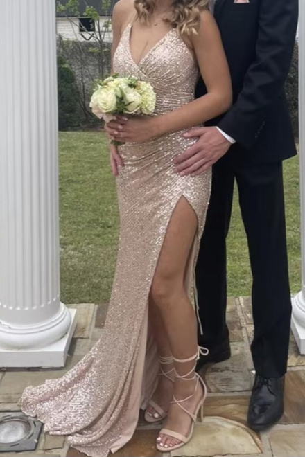 Light champagne sequin prom dresses, evening dresses,party dresses, sexy formal dress