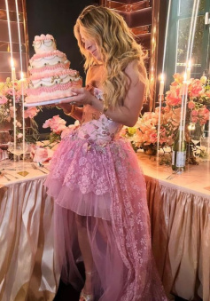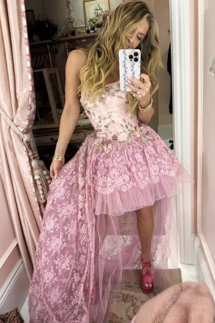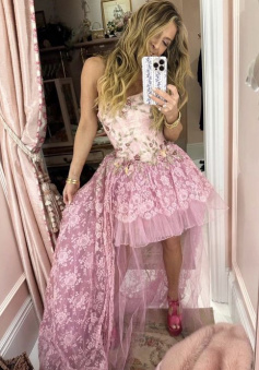 New Elegant Pink High Low Evening Party Fashion Prom Dress