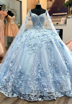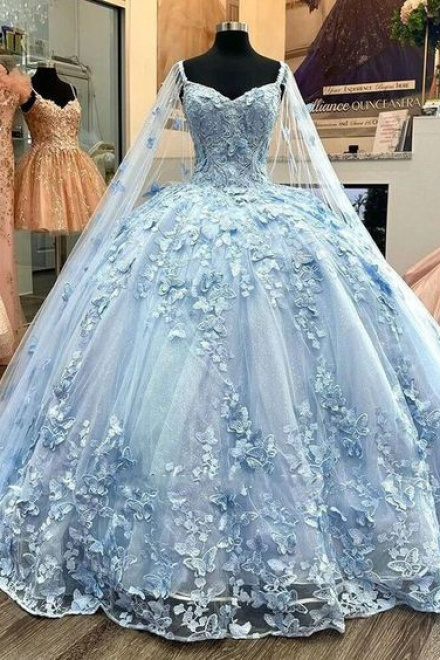Blue A Line Tulle Ball Gown Prom Dresses, Evening Gowns