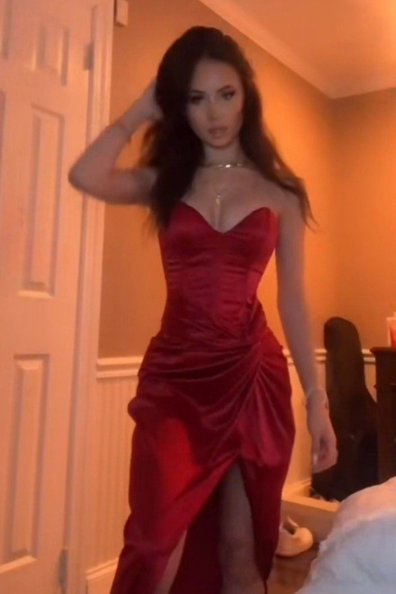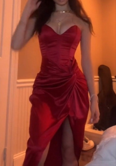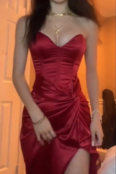 Burgundy Strapless Long Prom Dress Evening Dress With Slit