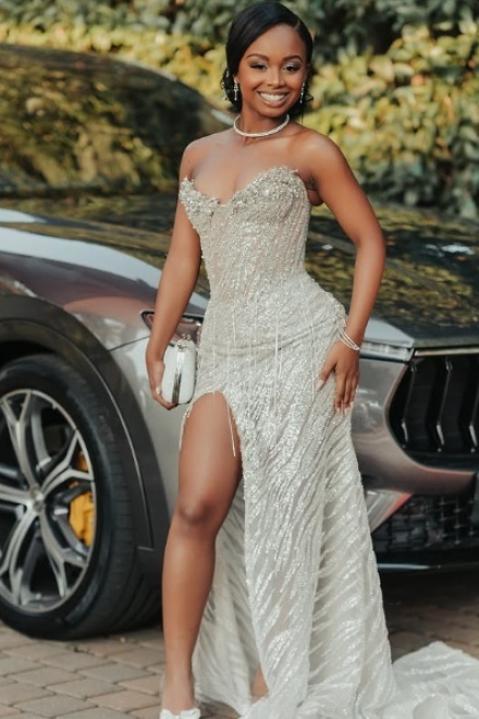 Sparkly Sequins Pearl Evening Dress Romantic Sweetheart Neck Cocktail Dresses Luxury Mermaid Prom Gown
