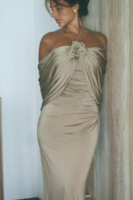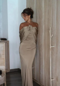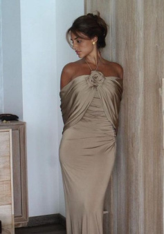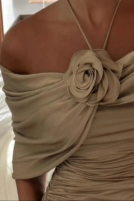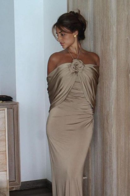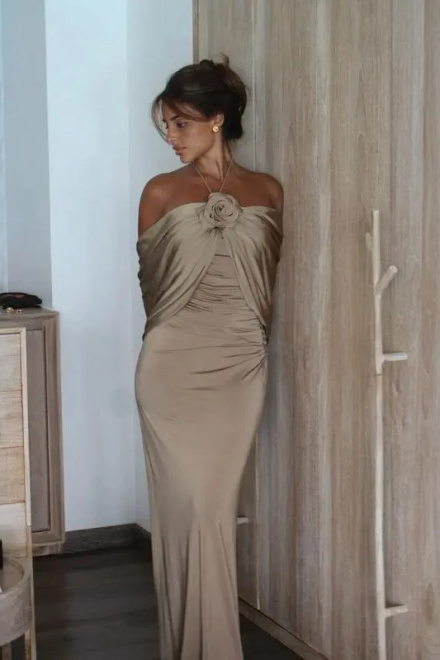 Party Dresses Champagne Evening Dress For Women Sleeveless Floor Length 3D Flower Formal Elegant Dress