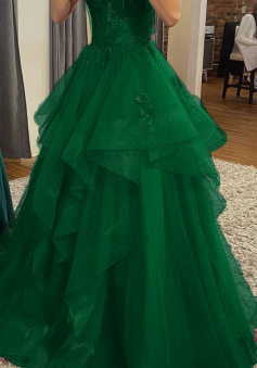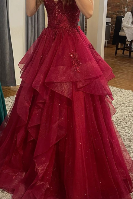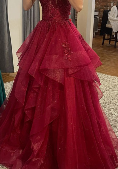 Burgundy Shinny Tulle A-Line Long Prom Dress Evening Party Dresses