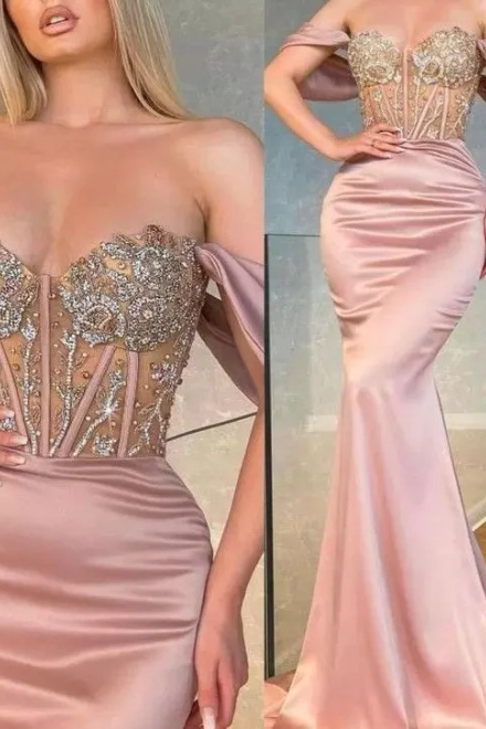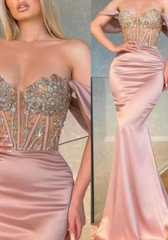 Stylish Off-The-Shoulder Shiny Hollow Split-Side Backless Evening Maxi Dress