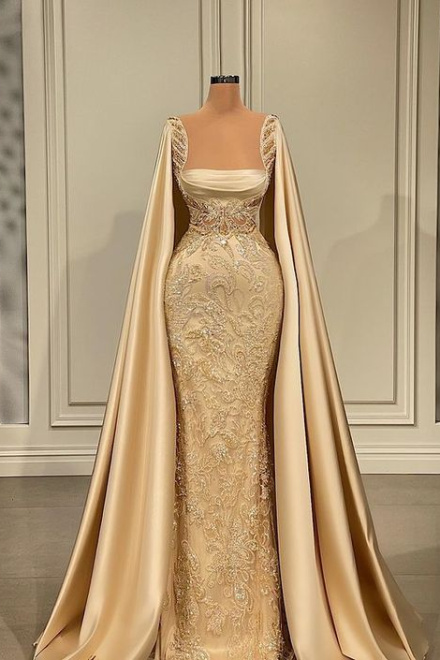Champagne Satin Women Formal Evening Party Prom Gowns
