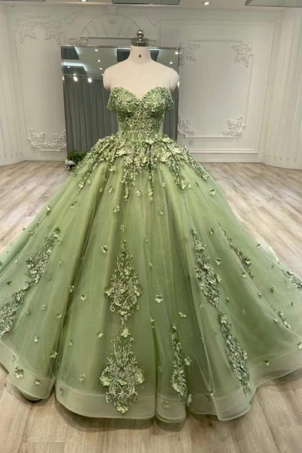 Green A Line Tulle Ball Gown Prom Dresses, Evening Gowns