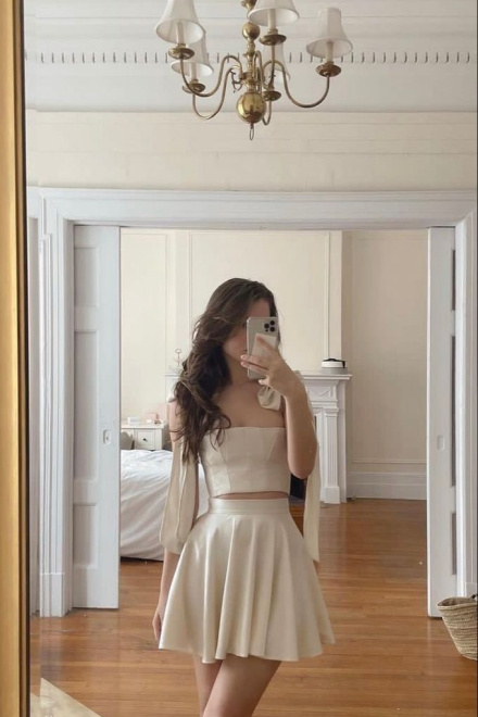 A Line Homecoming Dress Two Piece Short Evening Dress Cocktail Dresses Short Party Dress