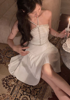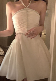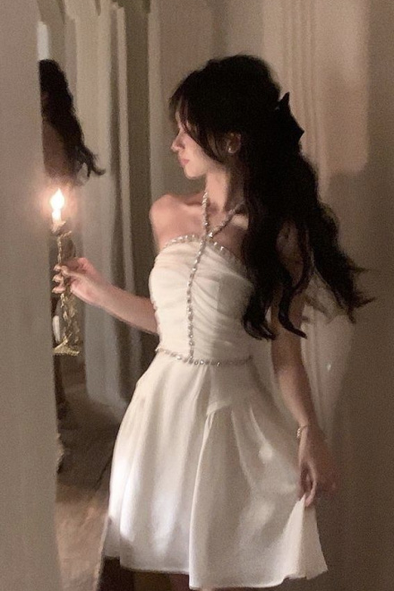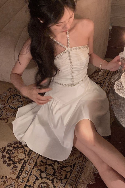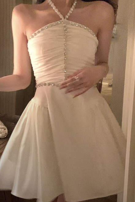 A Line White Halter Homecoming Dress Short Evening Dress Cocktail Dresses Short Party Dress