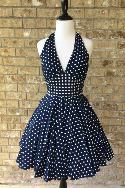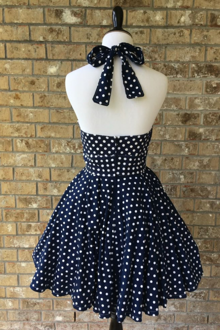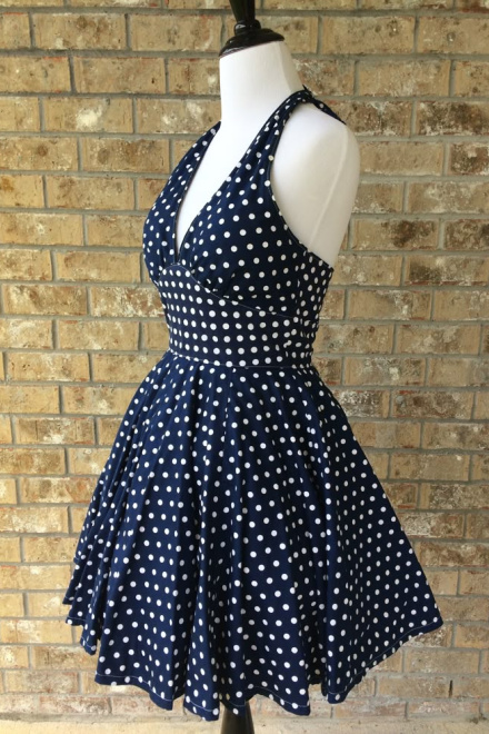 A Line Navy Polka Dots Homecoming Dress Short Evening Dress Cocktail Dresses Short Party Dress