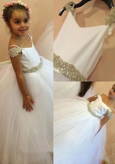 Cute V-neck Spaghetti Straps Pink Sequined Flower Girl Dress