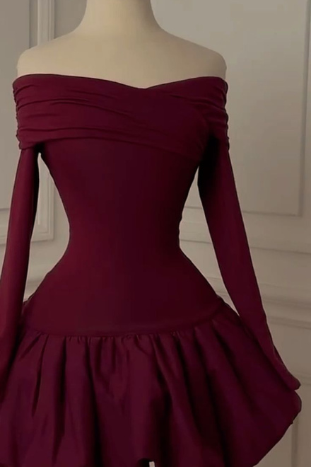 Burgundy Off Shoulder Homecoming Dress Short Evening Dress Cocktail Dresses Short Party Dress