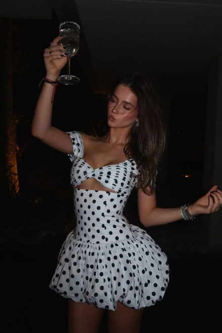 A Line Off Shoulder Polka Dots Homecoming Dress Short Evening Dress Cocktail Dresses Short Party Dress