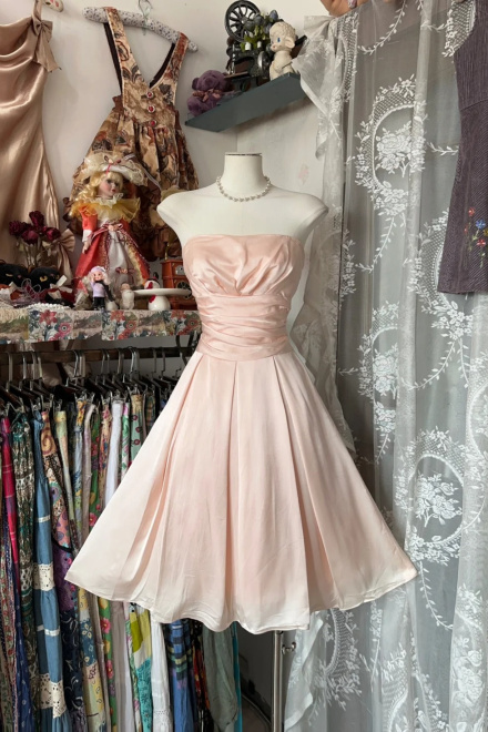A Line Pink Birthday Outfit Short Evening Dress Vintage Short Party Dress Homecoming Dress
