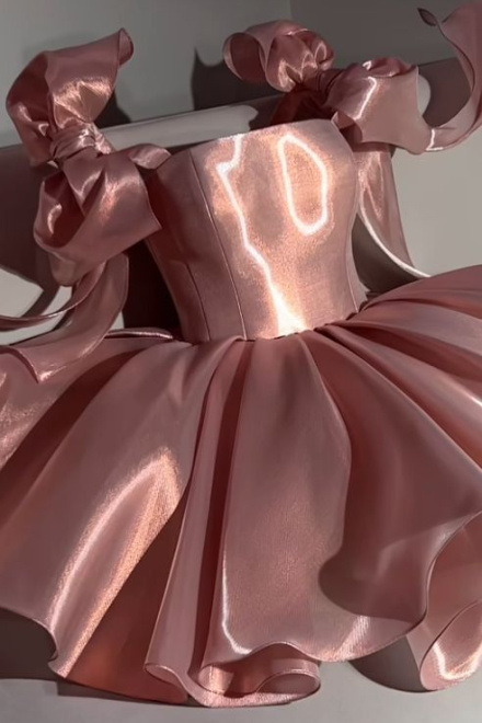 Pink Homecoming Dress with Bow Shoulder Ties A-line Short Party Gown