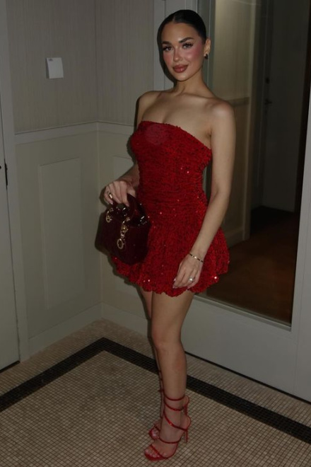 A Line Red Sequin Birthday Outfit Short Evening Dress Short Party Dress Homecoming Dress