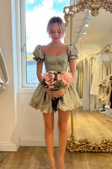 A Line Sage Short Prom Dress Birthday Party Dress Homecoming Dress