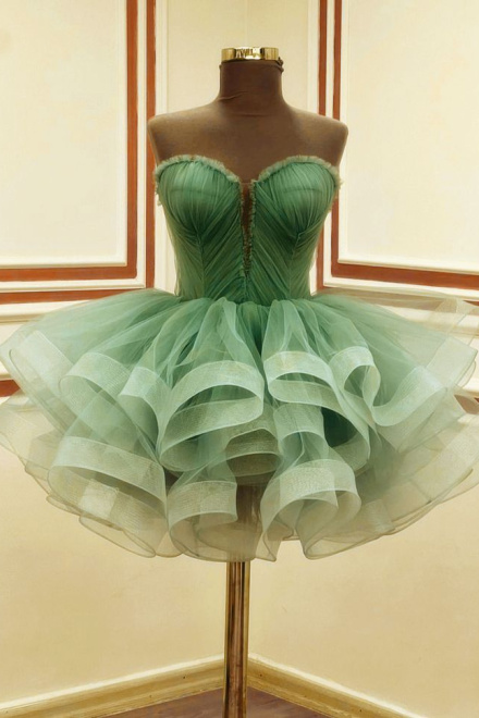 A Line Green Tulle Short Prom Dress Birthday Party Dress Homecoming Dress