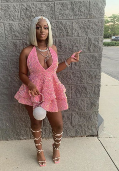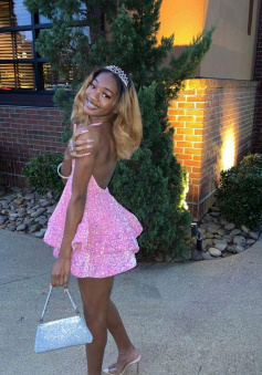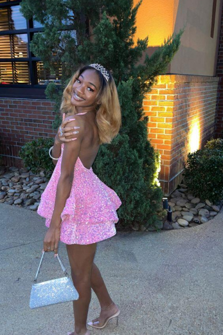 Halter Neckline Short Homecoming Dress Sequins Party Dress New Arrival Party Dress